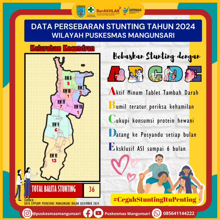 Berikut kami informasikan data persebaran stunting di wilayah kerja Puskesmas Mangunsari sampai dengan bulan Desember 2024 berdasarkan data EPPGBM.