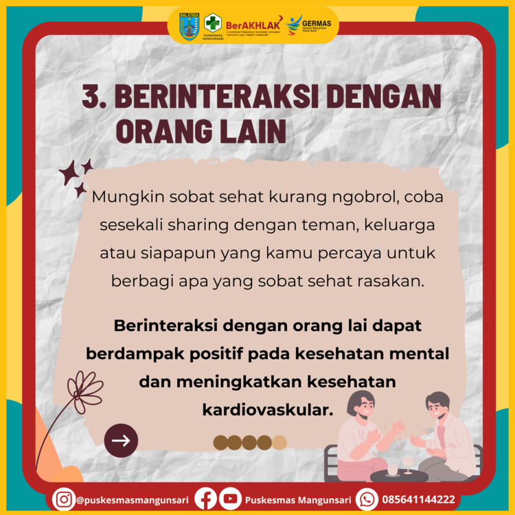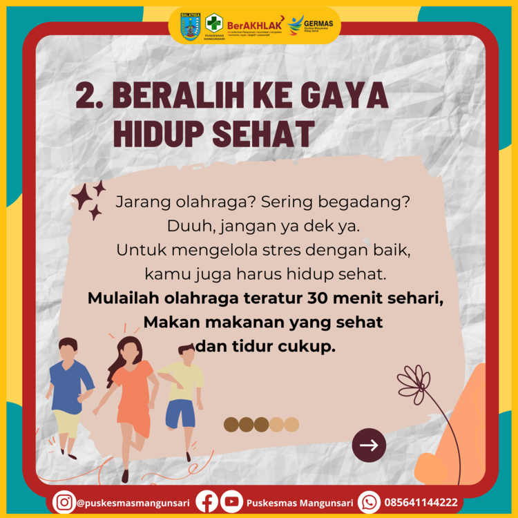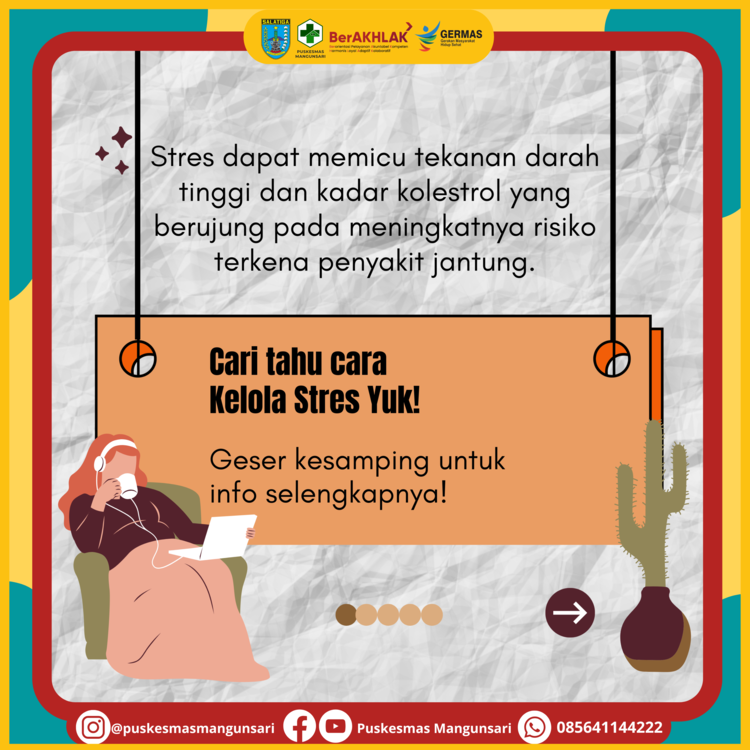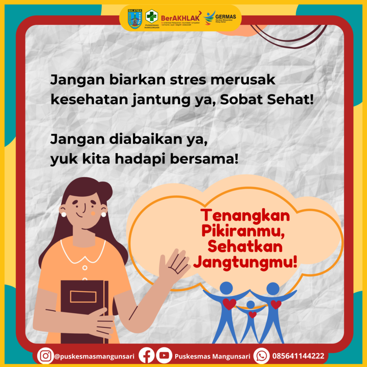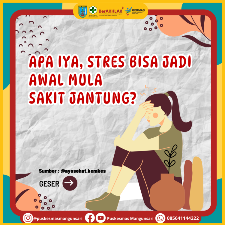 Semangat sehat SEHATI! Sabar ya sobat sehat, memang tidak mudah menjalani hidup yang penuh tanda tanya ini. Tapi bukan berarti kamu harus menghadapi stres setiap hari. Hidup bahagia itu perlu lho, buat kamu yang sering stres hati-hati ya bisa jadi itu awal mula sakit jantung. Coba ikuti tips atasi stress yang dijamin manjur! Jangan stres-stres ya Sobat Sehat. Kelola stres dengan baik kunci menjaga kesehatan jantung 🤍