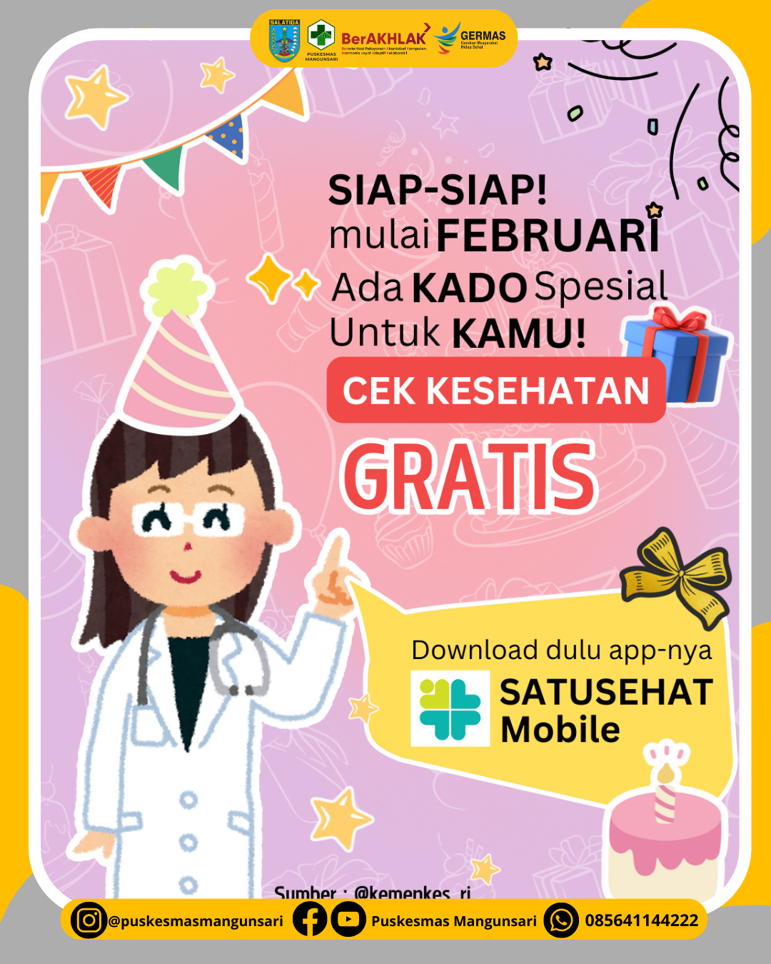 Dalam rangka merayakan hari ulang tahun spesialmu, akan ada layanan Cek Kesehatan GRATIS mulai Bulan Februari ini! 💝