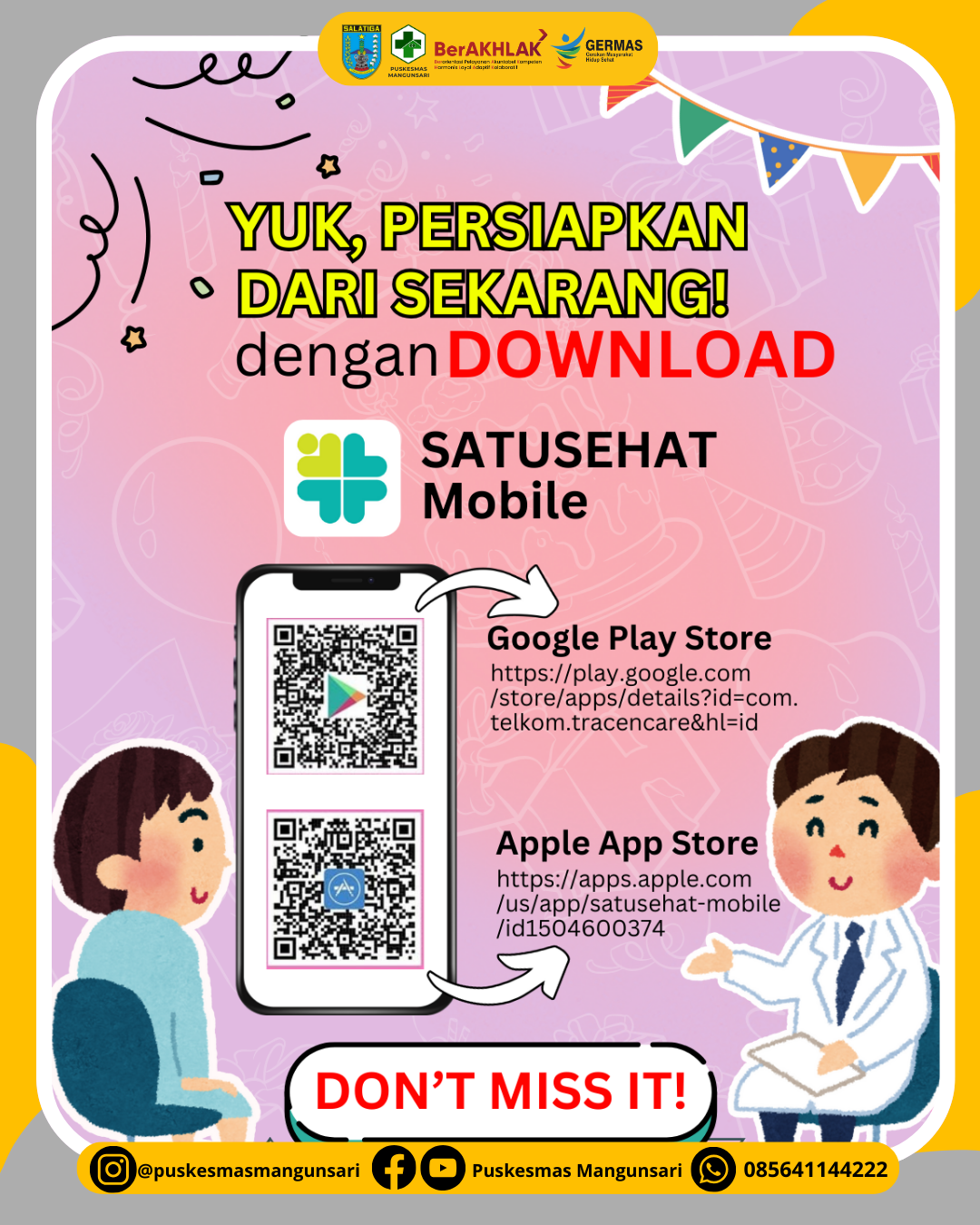 📲 JANGAN LUPA DOWNLOAD APLIKASI SATUSEHAT MOBILE sebagai SYARAT untuk mendapatkan program Cek Kesehatan Gratis ini ya! 🌟