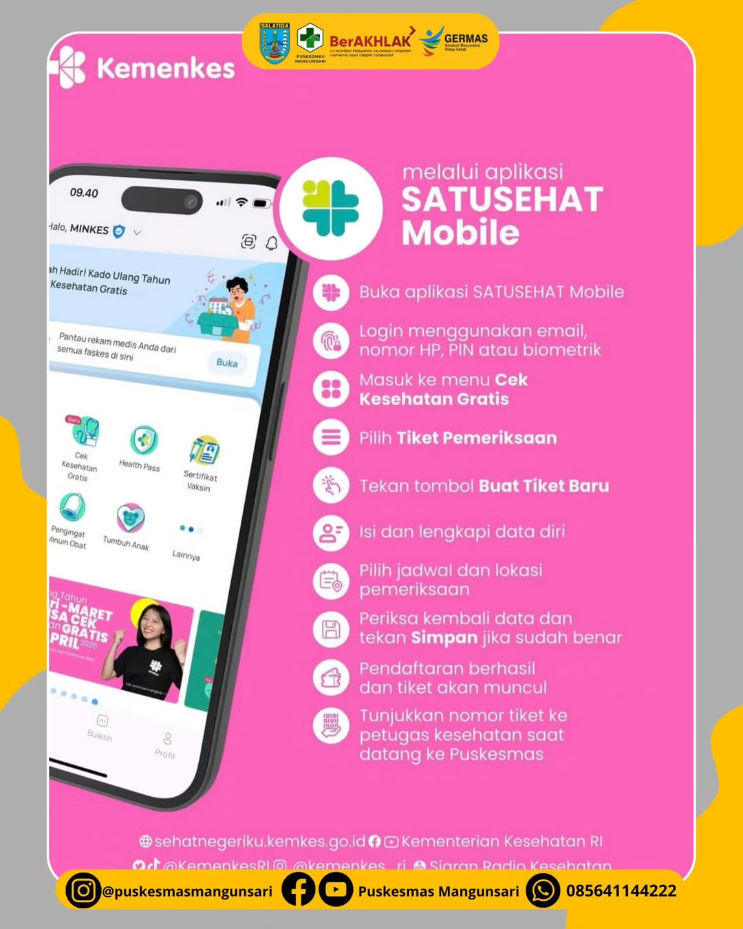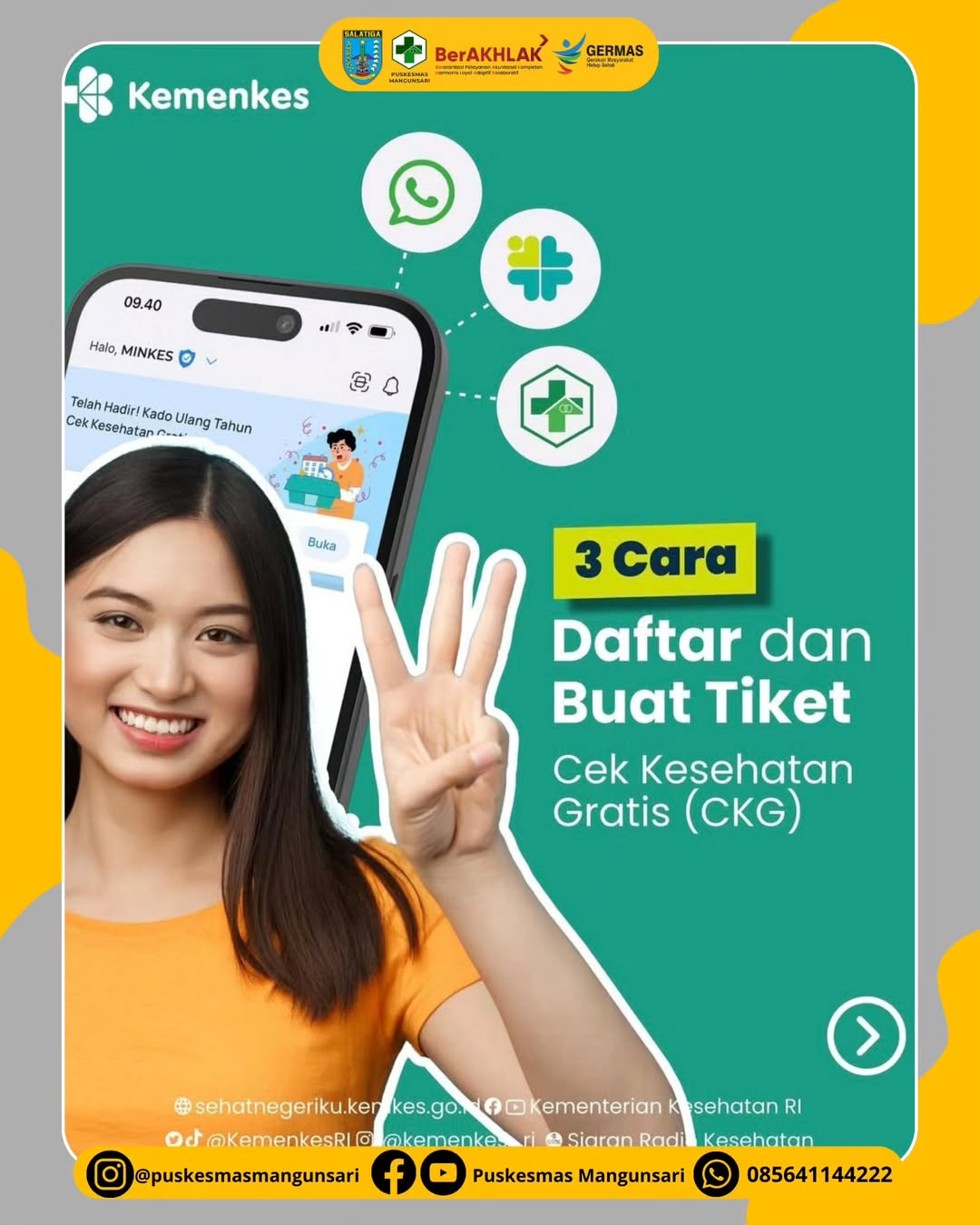 Salam Sehat Sehati! #repost @kemenkes_ri Yuk simak cara berikut untuk daftar dan buat tiket Cek Kesehatan Gratis (CKG) spesial bagi yang berulang tahun 🤩