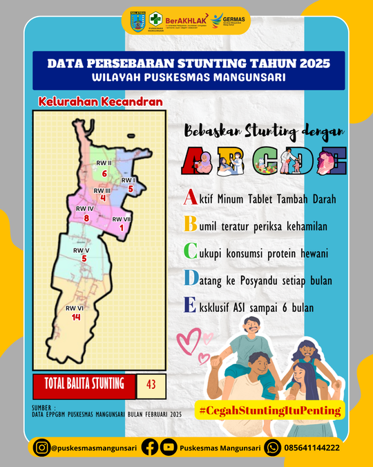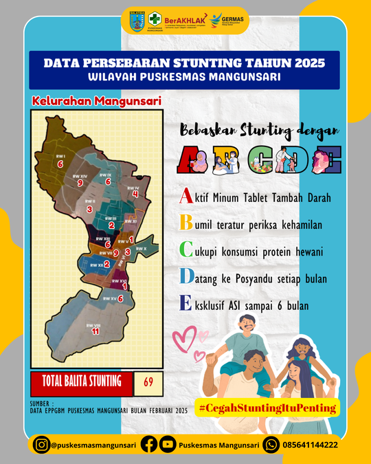 Berikut kami informasikan data persebaran stunting di wilayah kerja Puskesmas Mangunsari sampai dengan bulan Februari 2025 berdasarkan data EPPGBM.