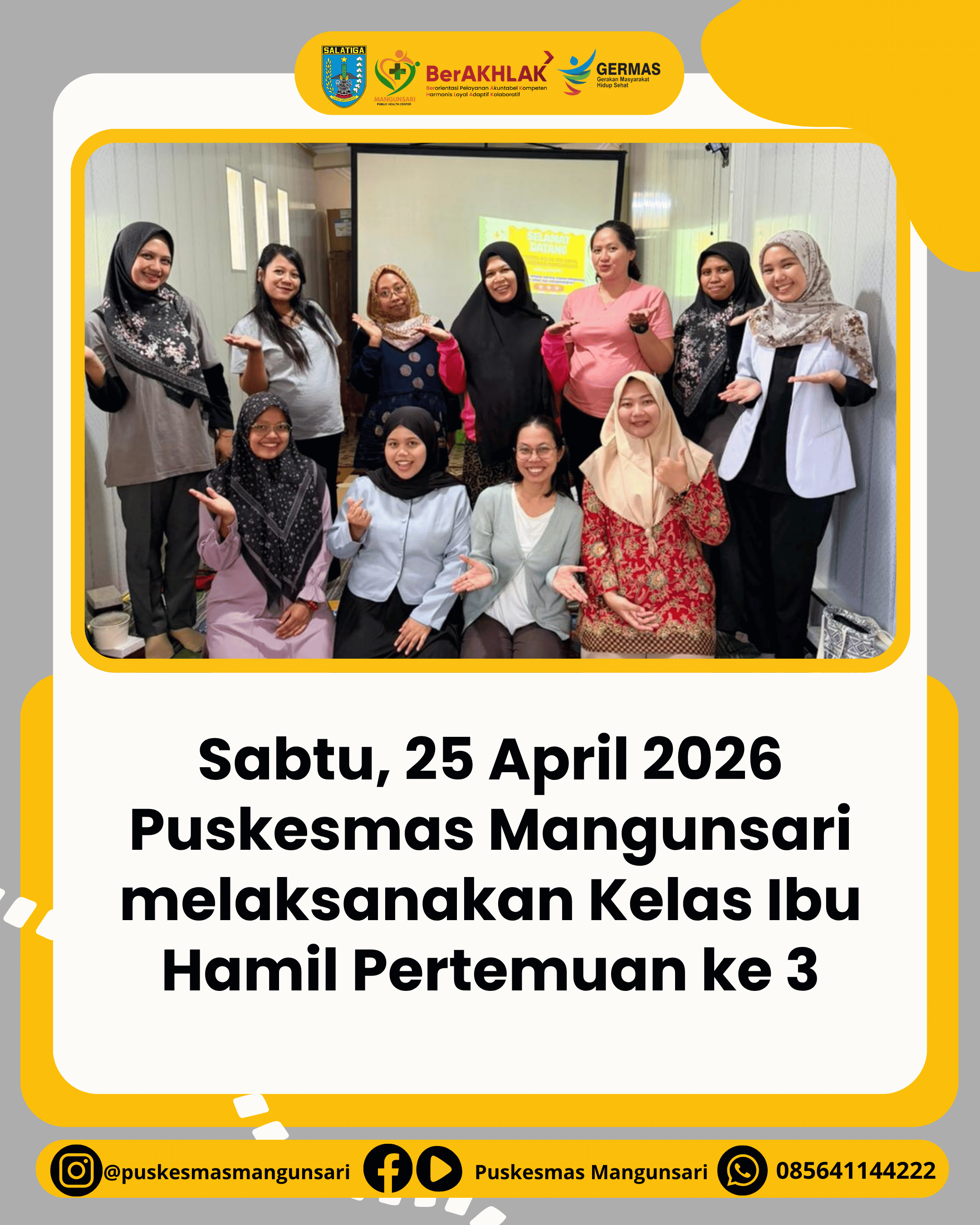 Berikut dokumentasi kegiatan Kelas Ibu Hamil Pertemuan 3 di Puskesmas Mangunsari.