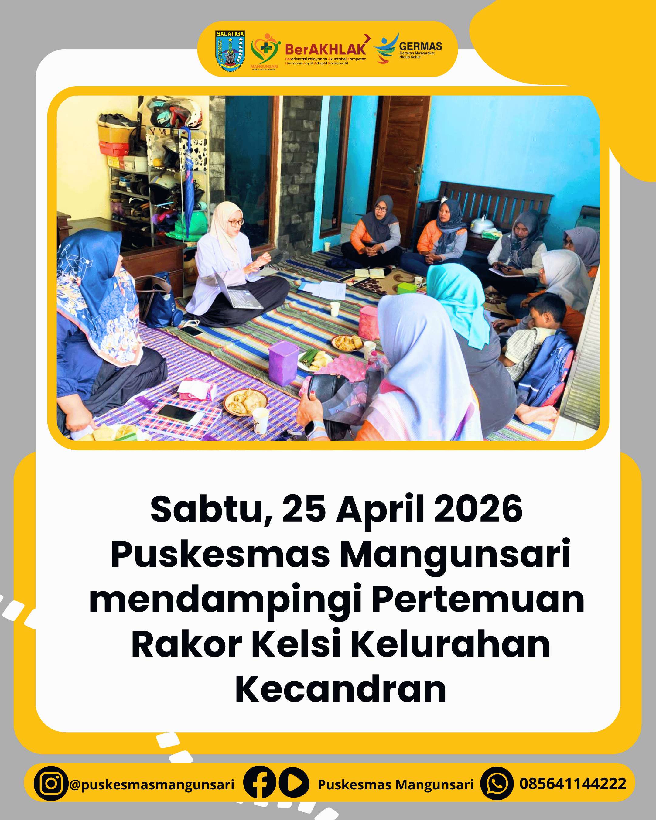 Sabtu, 25 April 2026 Puskesmas Mangunsari melakukan pendampingan pada Kegiatan Rakor Kader Kelsi Kelurahan Kecandran.