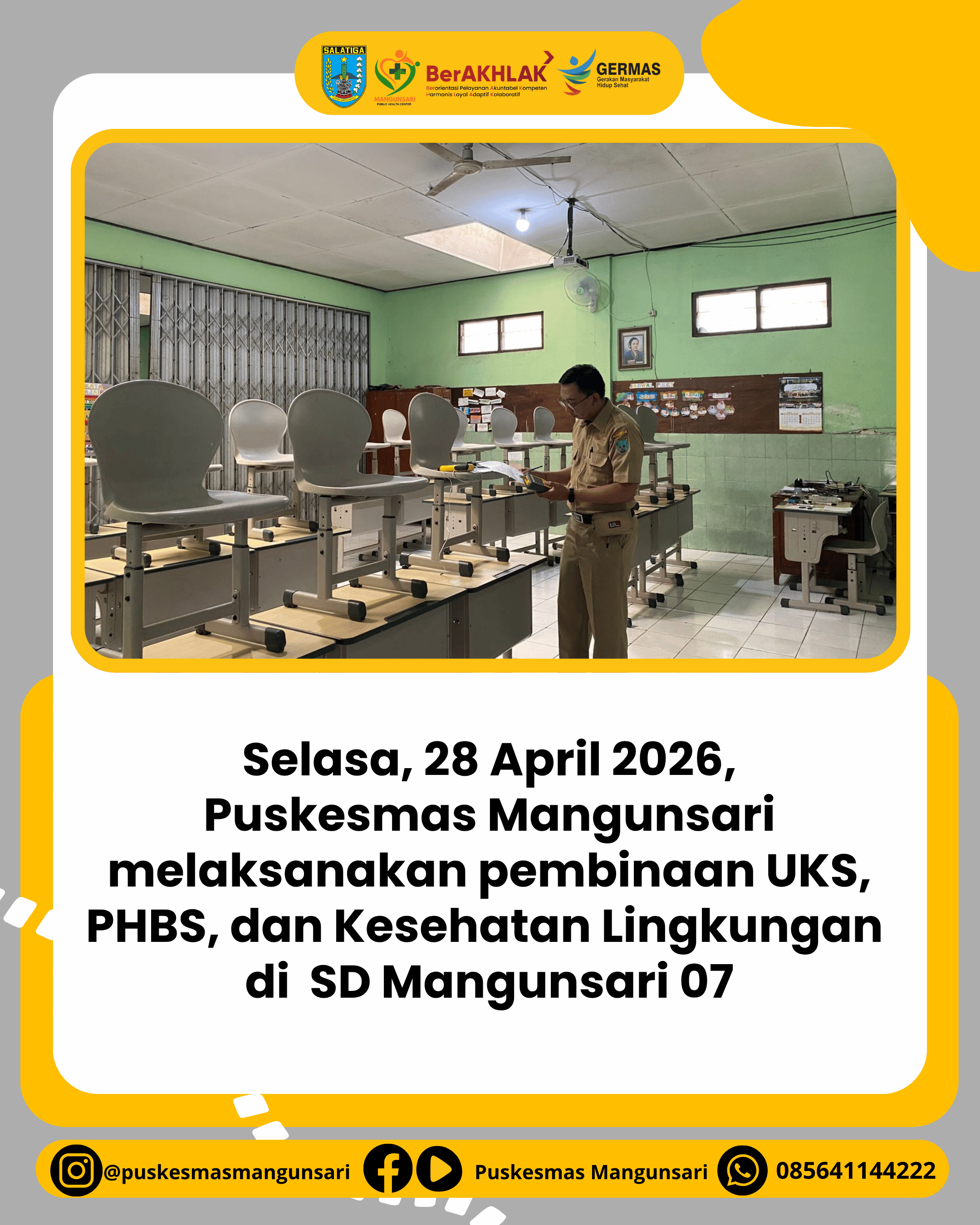 Selasa, 28 April 2026 Puskemas mangunsari kembali melakukan Pendataan PHBS, Pembinaan UKS dan Pemeriksaan Lingkungan Sekolah di SD Mangunsari 07
