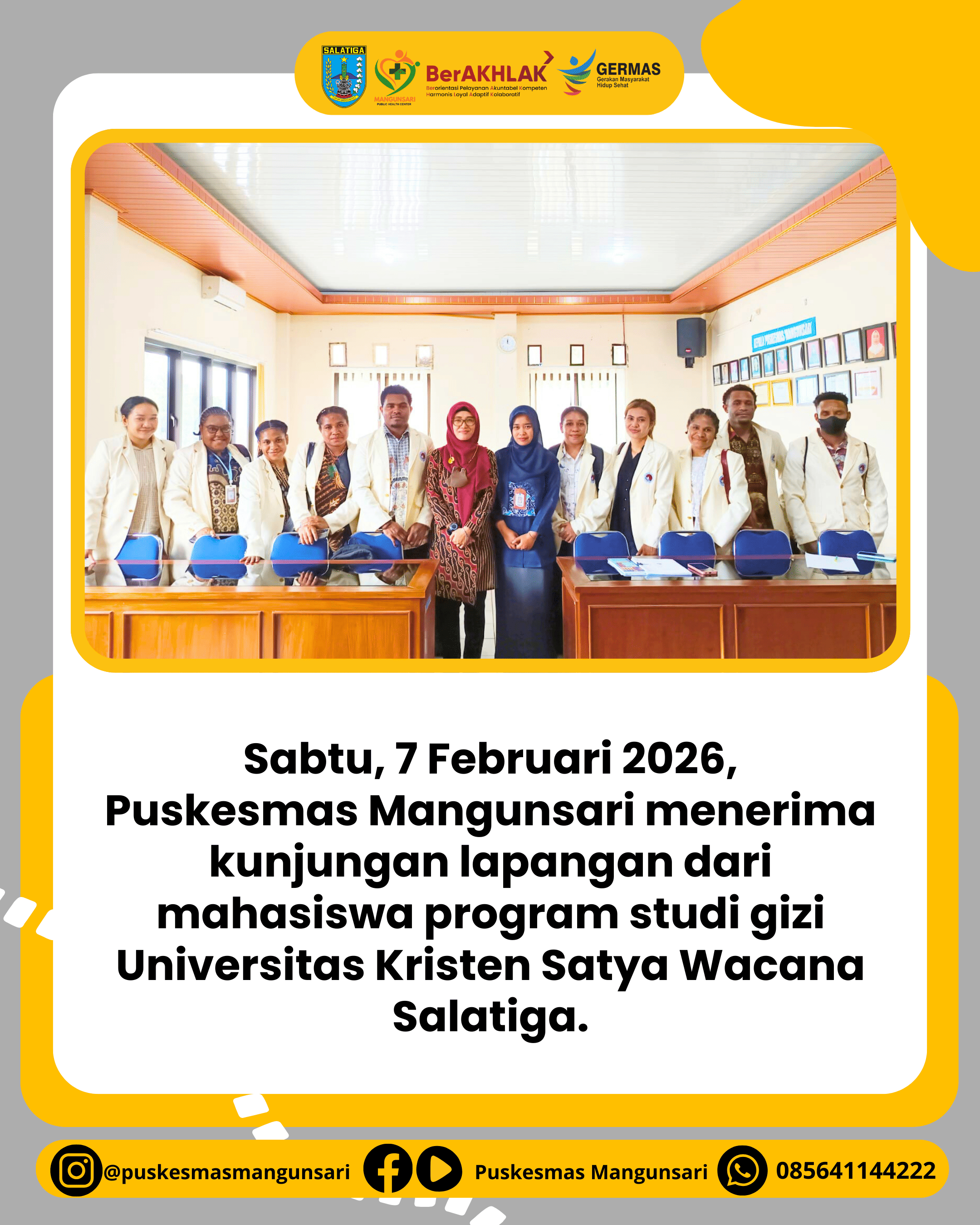 Tak Berkategori PUSKESMAS MANGUNSARI MENERIMA KUNJUNGAN LAPANGAN DARI MAHASISWA PROGRAM STUDI GIZI UKSW Feb 7, 2026